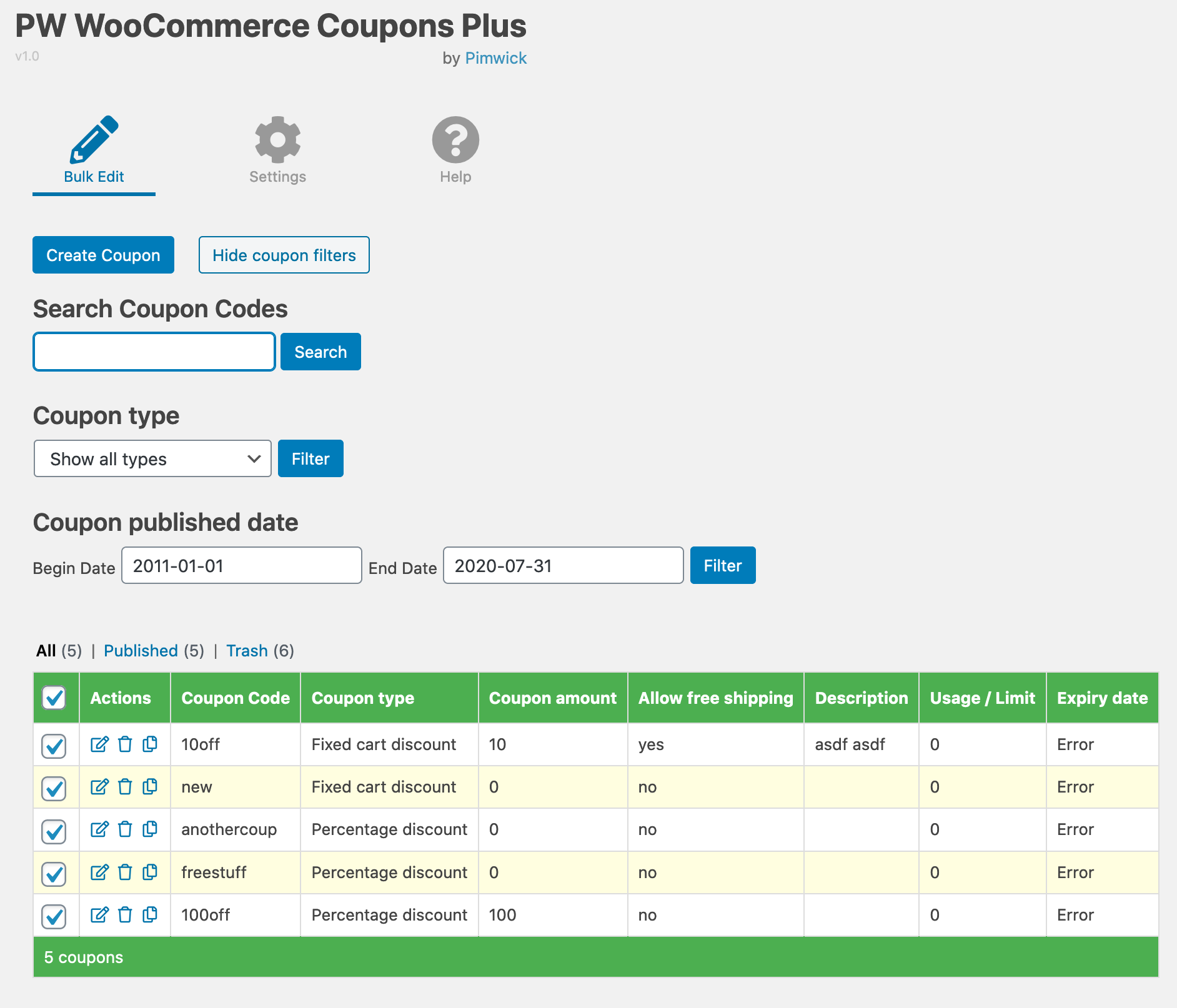 - Coupon Bulk Editor – Quickly change multiple coupons.